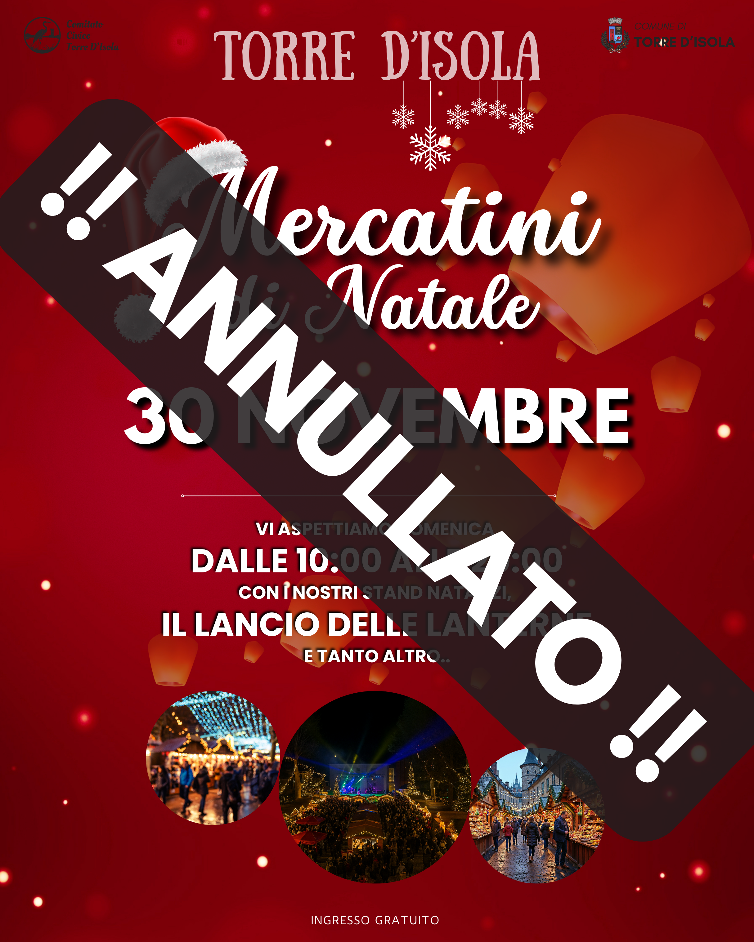 ANNULLAMENTO causa maltempo dei Mercatini di Natale di Torre d'Isola del 30 Novembre