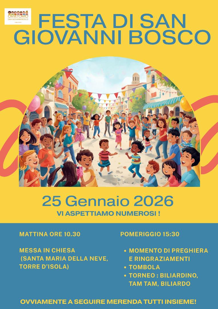 segnaliamo un momento di festa al nostro Oratorio: Domenica 25 gennaio, in occasione della ricorrenza di don Bosco, vivremo una domenica speciale, con il seguente programma:
